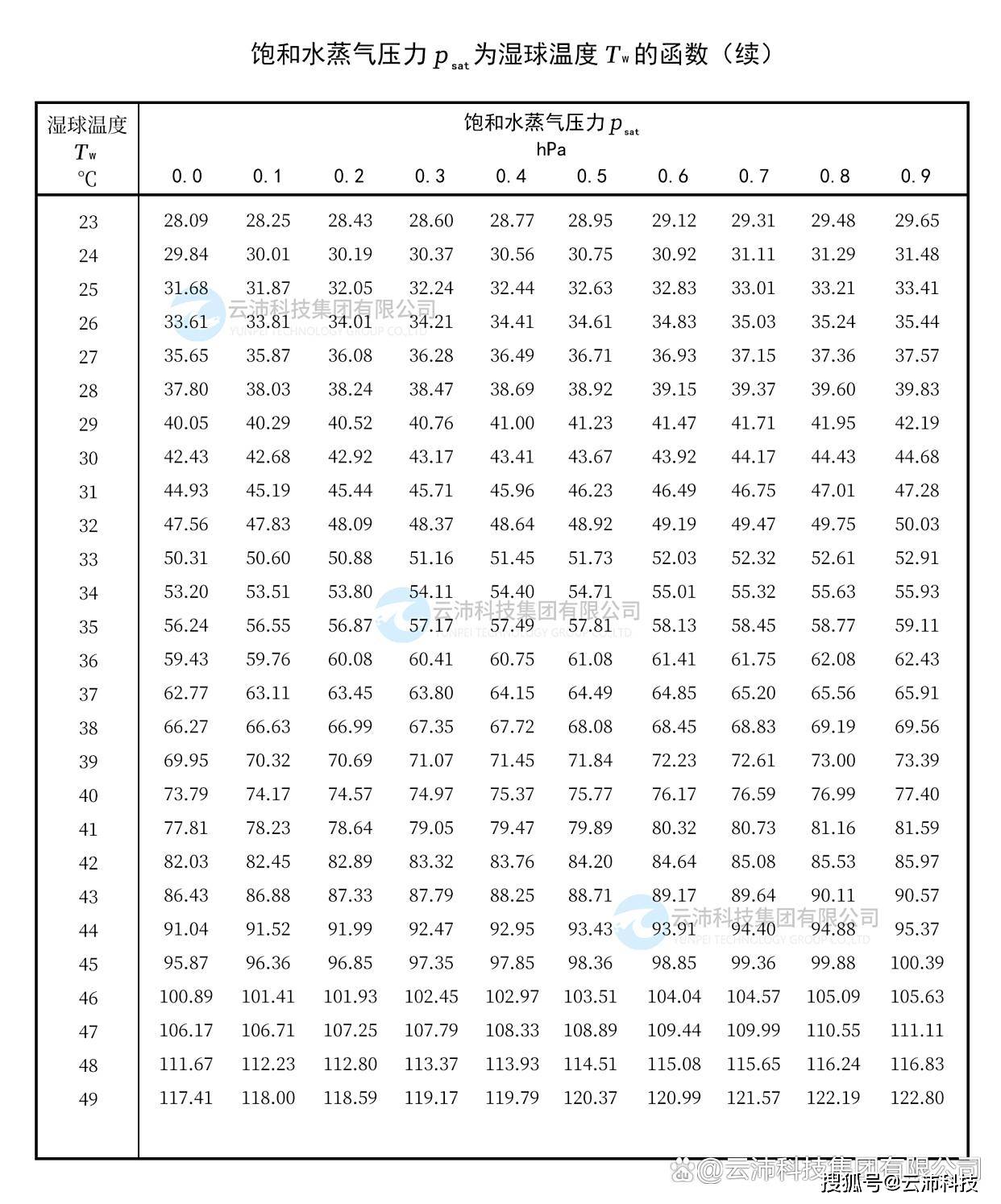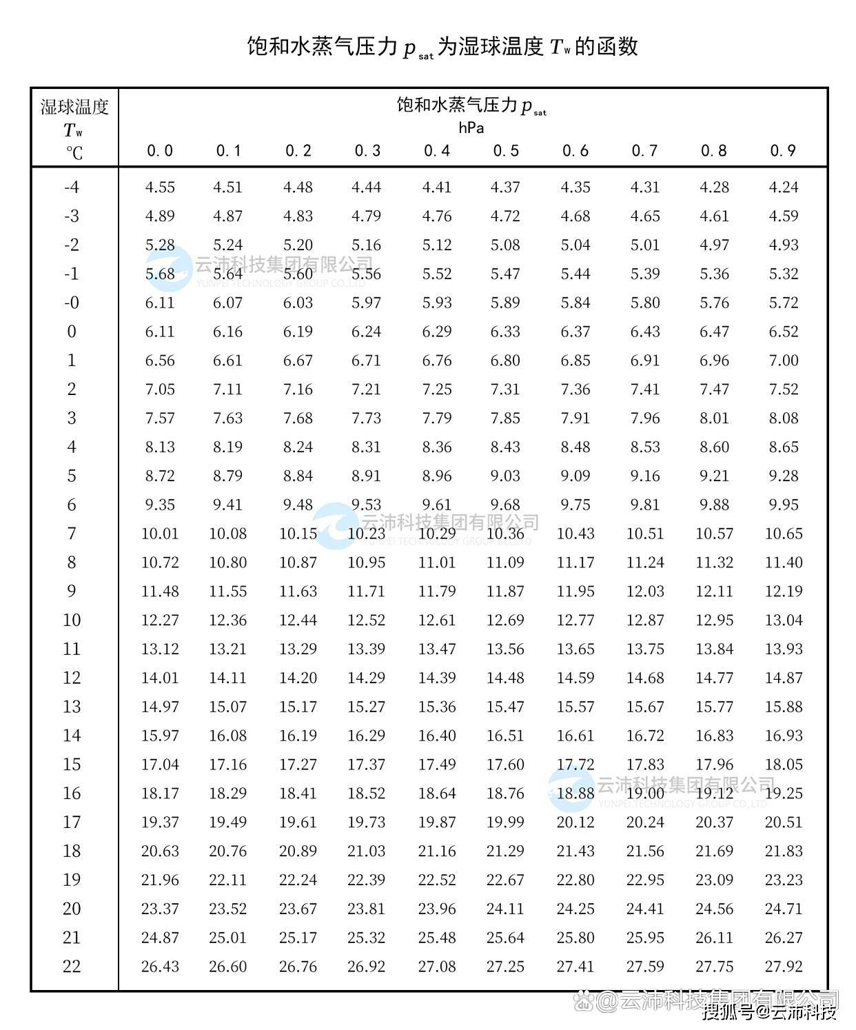 空气密度对风机性能测试结果的影响 饱和蒸气压力值对照表